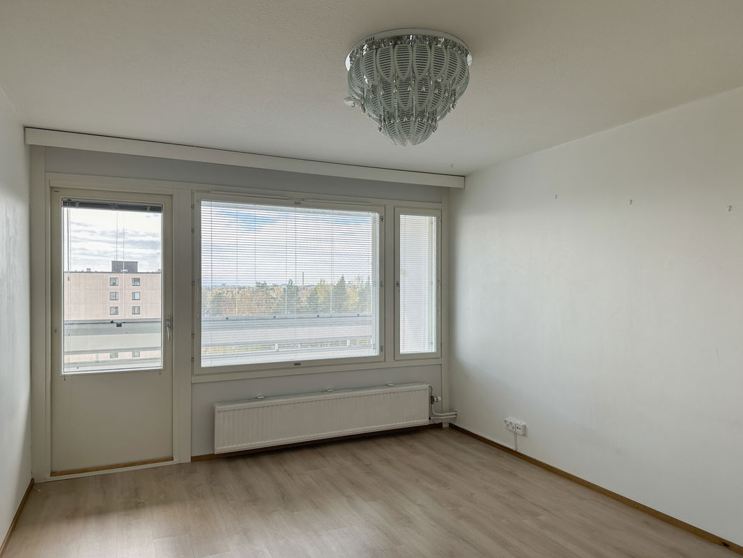 Yhdeksänkerroksinen tornitalo rauhallisella sijainnilla. Ylimpien kerroksien asunnoista on hulppeat näköalat.
